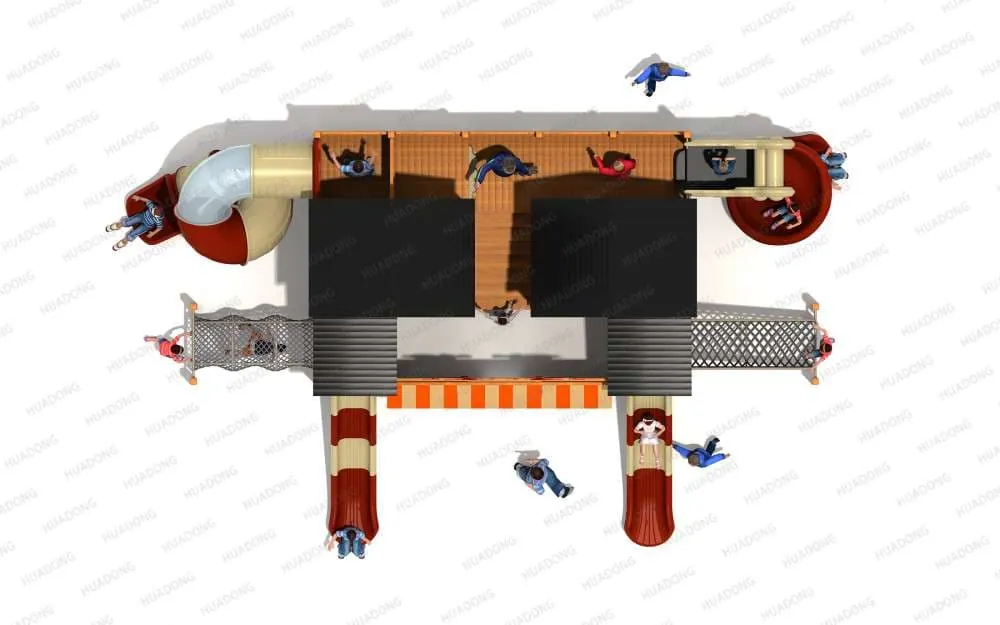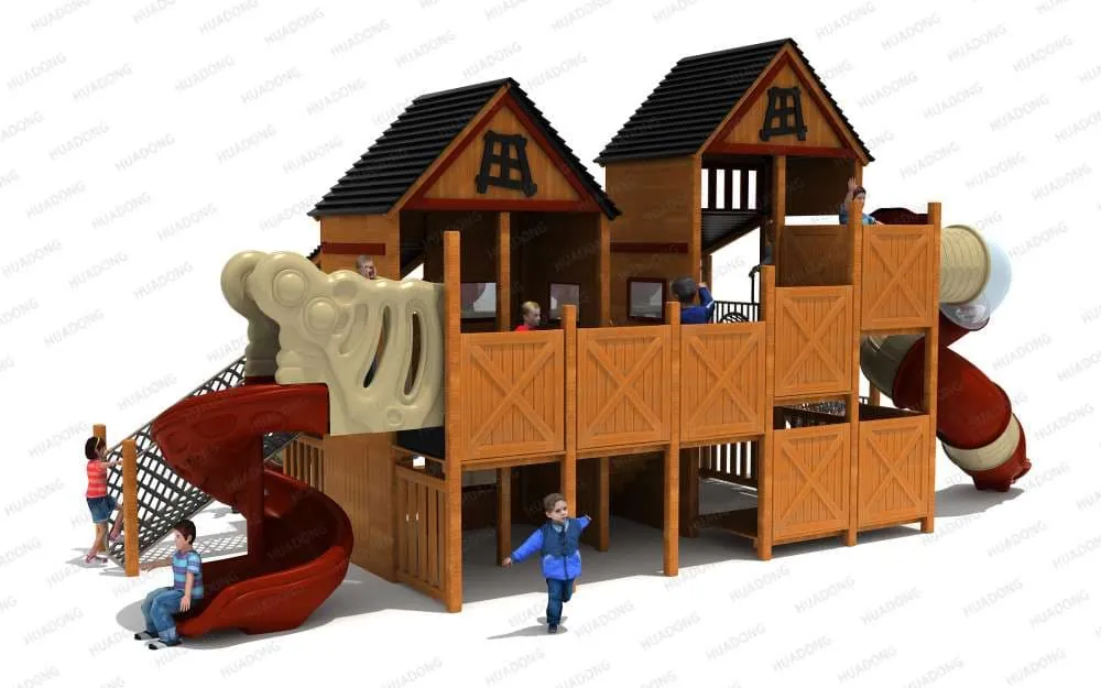 | Material | 1. Plastic parts: LLDPE, Roto-moulded 2. Metal parts: Galvanized steel pipe, color powder coated. 3. Platform/Stepped-ladder: Steel sheet, color powder coated or PVC coated (About coated). Advantage of PVC coated: 1) PVC coated is soft and thus prevents kids from bruising. 2) In extreme weather, PVC coating prevent the deck and stepped-ladder getting too hot or cold. |