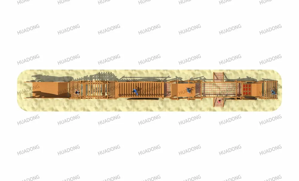 The wooden expansion facility is crafted from natural wood with a design that emphasizes both safety and challenge. Through diverse obstacle elements such as suspension bridges climbing nets and balance beams it aims to enhance participants' physical