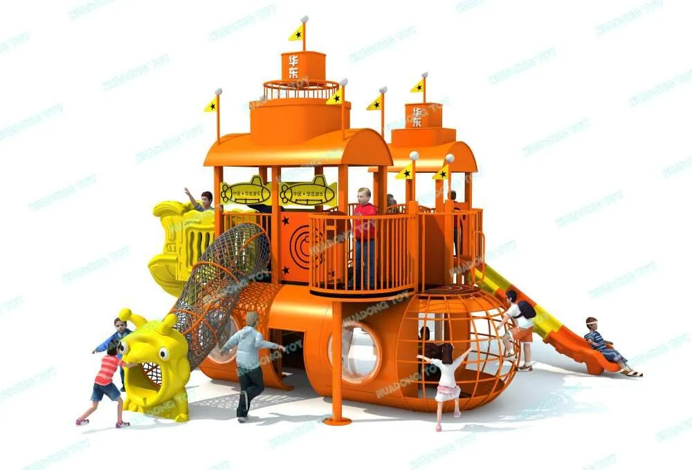 | Material | 1. Plastic parts: LLDPE, Roto-moulded 2. Metal parts: Galvanized steel pipe, color powder coated. 3. Platform/Stepped-ladder: Steel sheet, color powder coated or PVC coated (About coated). Advantage of PVC coated: 1) PVC coated is soft and thus prevents kids from bruising. 2) In extreme weather, PVC coating prevent the deck and stepped-ladder getting too hot or cold. |