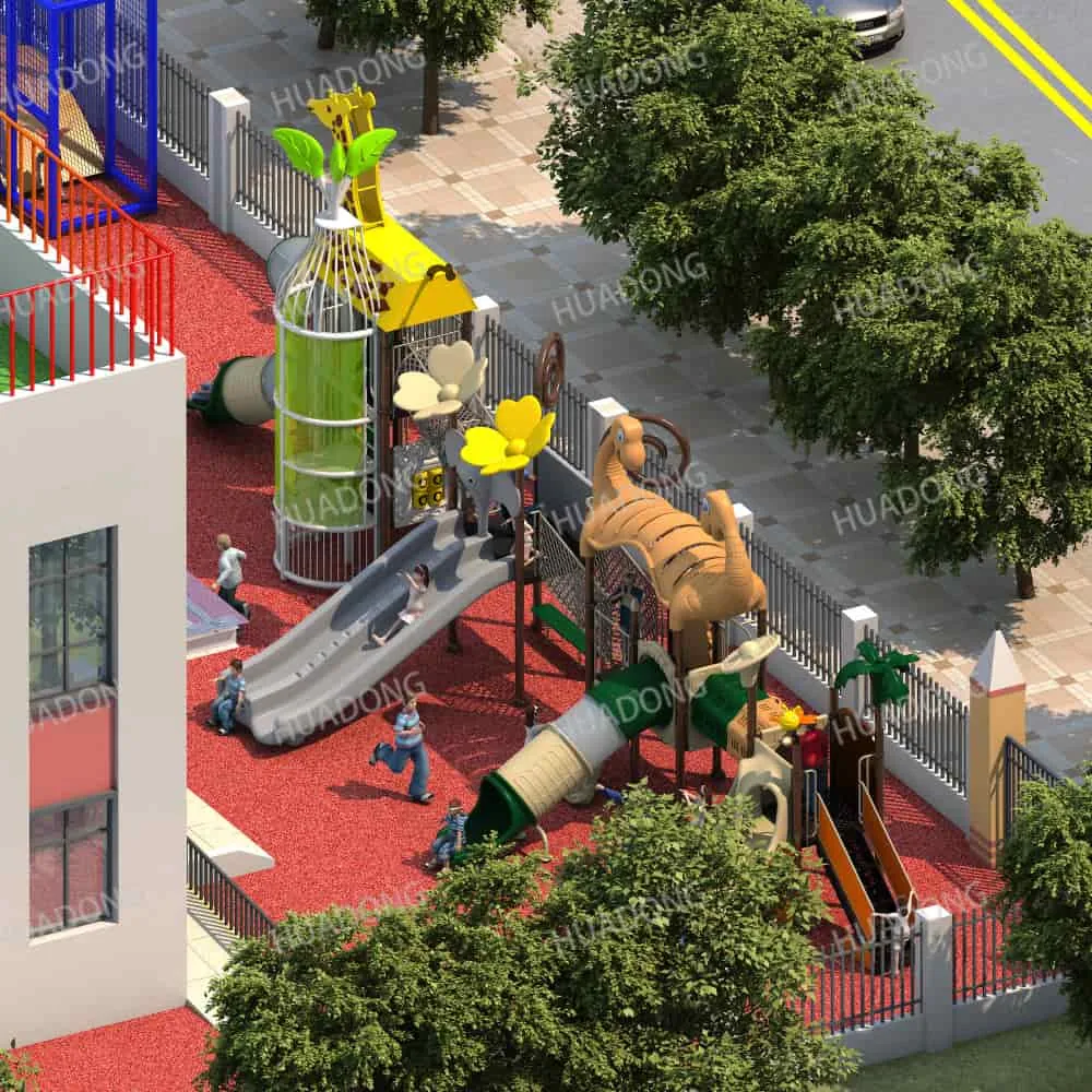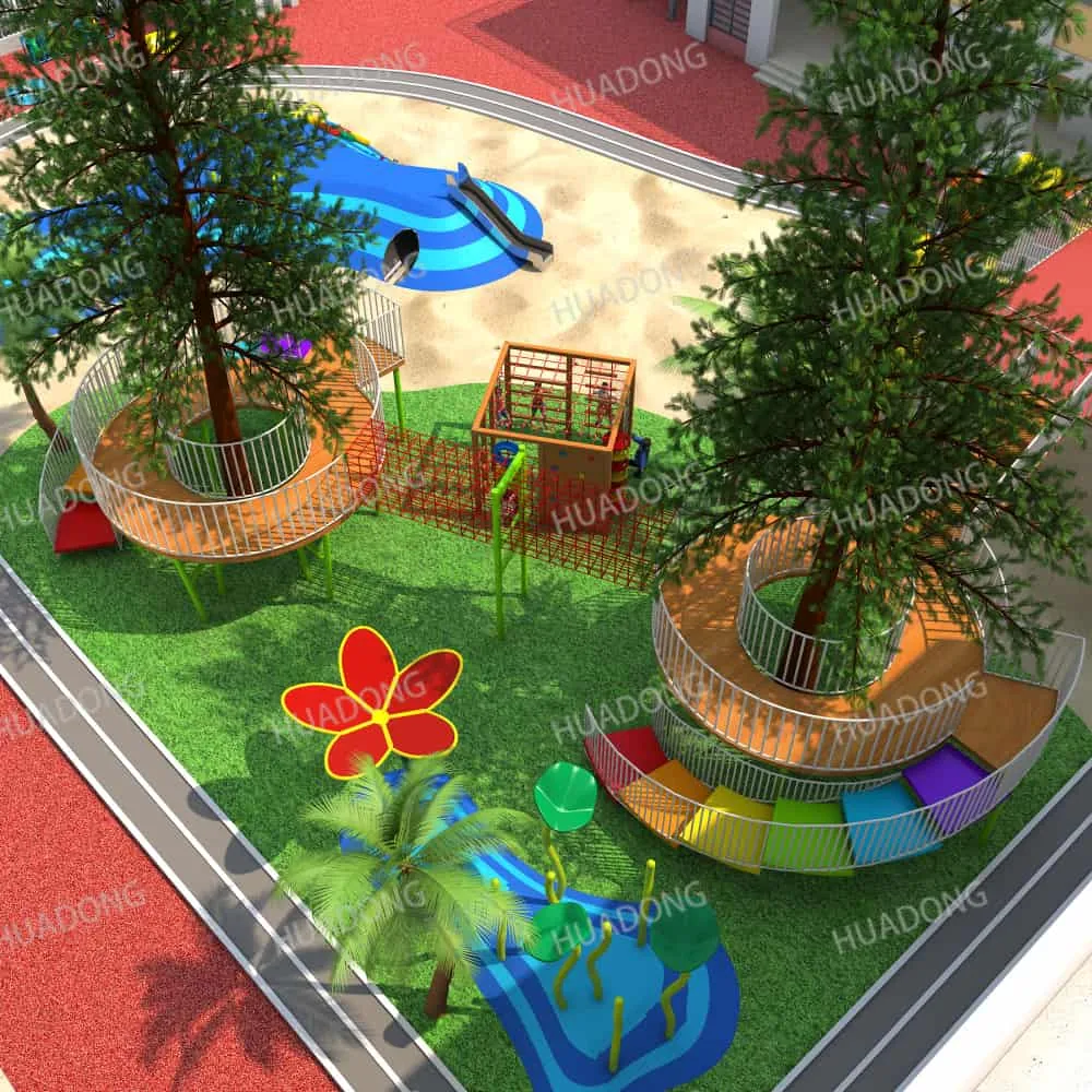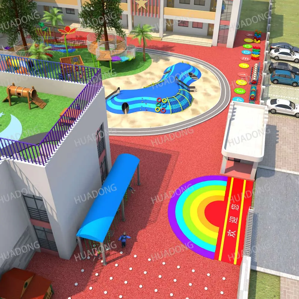 The overall planning is a representative recreational venue design specifically tailored for clients by HUADONG amusement designers, encompassing architectural style design, green belt design, and the layout design of amusement equipment. It ensures a sea