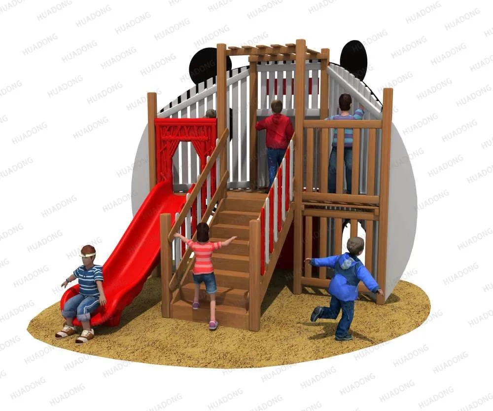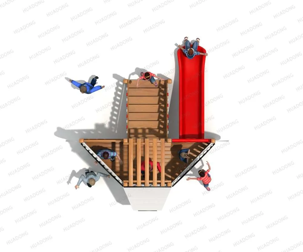 | Material | 1. Plastic parts: LLDPE, Roto-moulded 2. Metal parts: Galvanized steel pipe, color powder coated. 3. Platform/Stepped-ladder: Steel sheet, color powder coated or PVC coated (About coated). Advantage of PVC coated: 1) PVC coated is soft and thus prevents kids from bruising. 2) In extreme weather, PVC coating prevent the deck and stepped-ladder getting too hot or cold. |