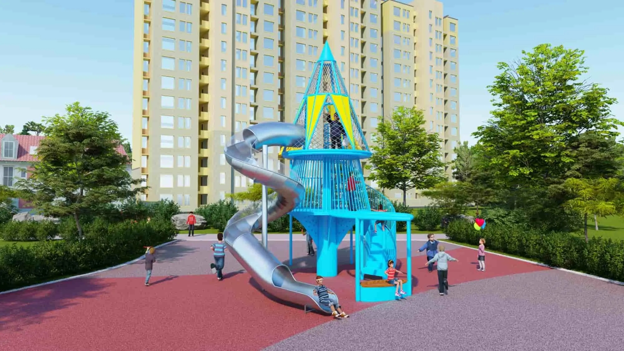 | Material | 1. Plastic parts: LLDPE, Roto-moulded 2. Metal parts: Galvanized steel pipe, color powder coated. 3. Platform/Stepped-ladder: Steel sheet, color powder coated or PVC coated (About coated). Advantage of PVC coated: 1) PVC coated is soft and thus prevents kids from bruising. 2) In extreme weather, PVC coating prevent the deck and stepped-ladder getting too hot or cold. |