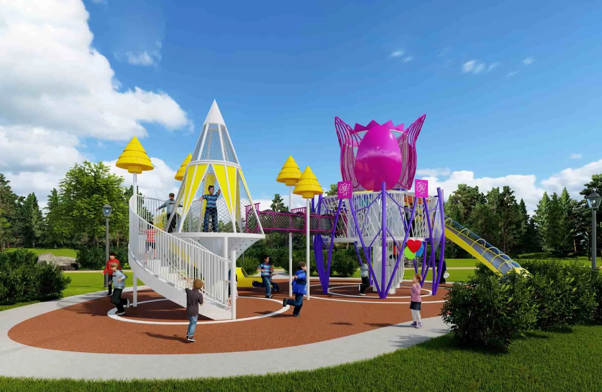The design inspiration for the thematic landscape series comes from various thematic landscapes. Through the stylized design of the themes different thematic styles are reflected allowing children to experience different joys while playing outdoors. At