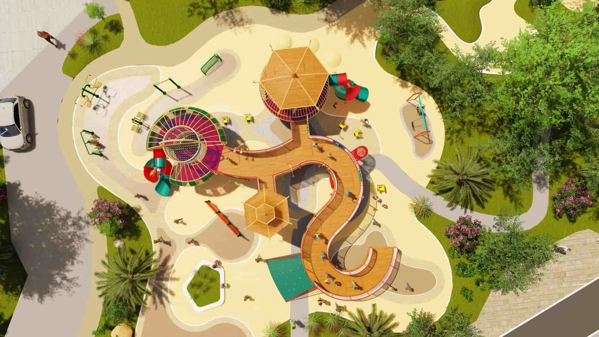 Theme parks, schools, real estate communities, municipal squares, supermarkets, hotels, and other venues.