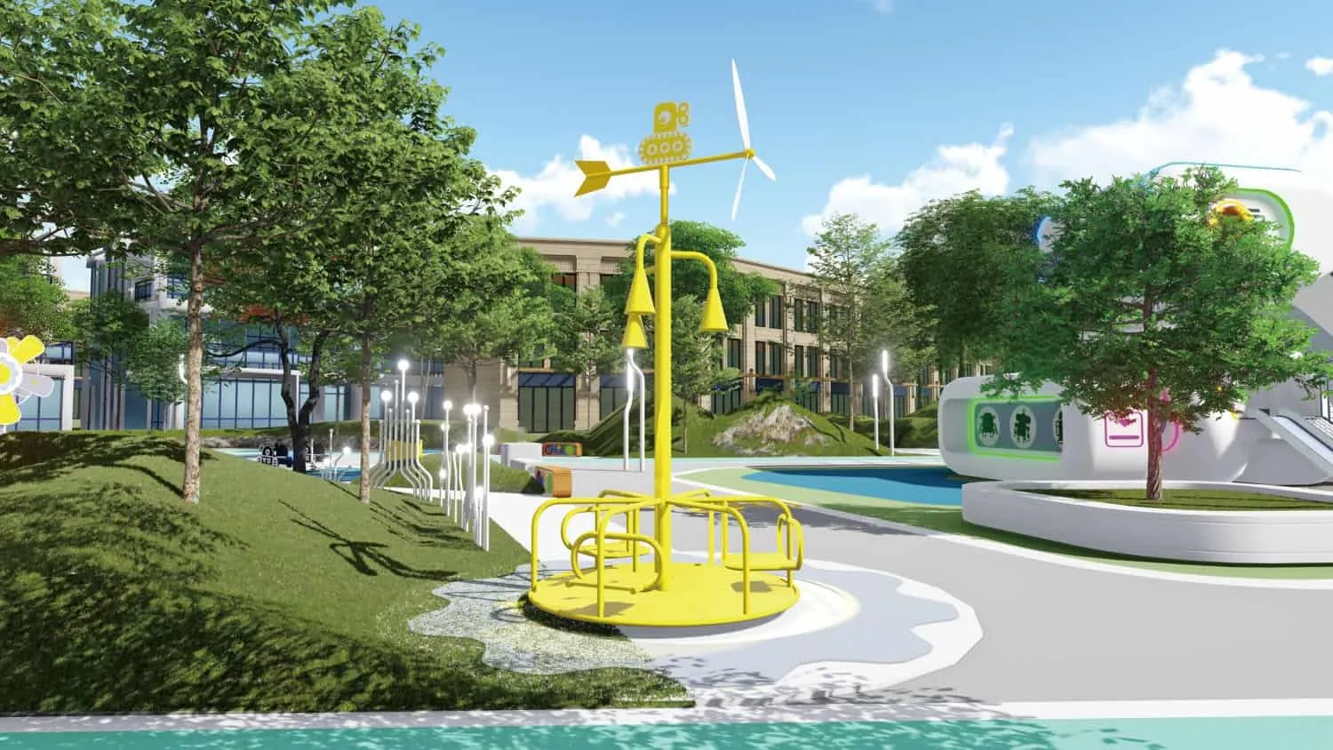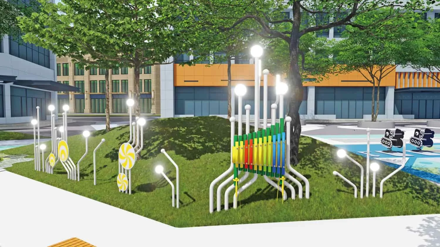 Theme parks, schools, real estate communities, municipal squares, supermarkets, hotels, and other venues.