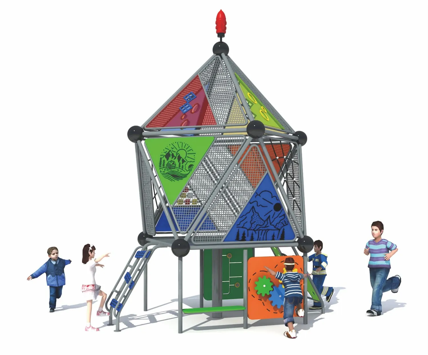 | Material | 1. Plastic parts: LLDPE, Roto-moulded 2. Metal parts: Galvanized steel pipe, color powder coated. 3. Platform/Stepped-ladder: Steel sheet, color powder coated or PVC coated (About coated). Advantage of PVC coated: 1) PVC coated is soft and thus prevents kids from bruising. 2) In extreme weather, PVC coating prevent the deck and stepped-ladder getting too hot or cold. |