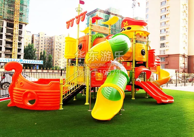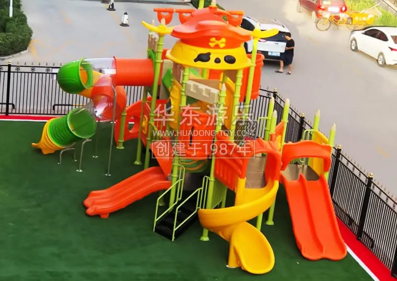 The Huadong Pirate Ship is a slide set inspired by the Pirates of the Caribbean model, designed to embody a spirit of adventure and challenge. This playground equipment is known for its exquisite design, comprehensive features, and diverse play options.