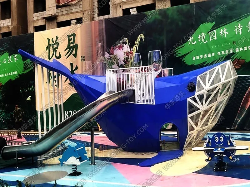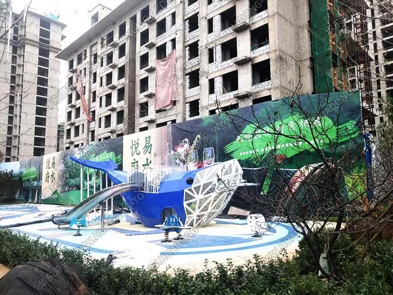 This project's centerpiece is the Giant Whale Slide, an original design by Huadong Amusement. It also includes other play features like rocking horses. With its flawless design and strong practicality, the entire project is a big hit with residents.