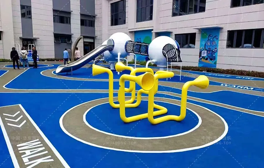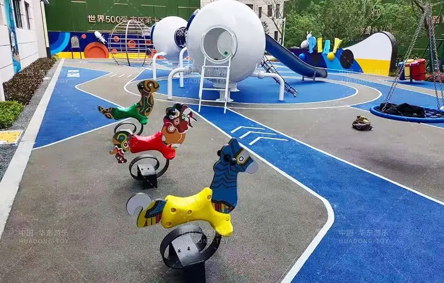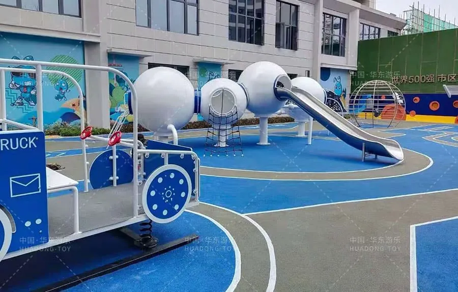 The playground is designed around the theme of "The World of Ants" vividly depicting the wonders of the ant world. It features a variety of play equipment including rope tunnels rope climbing structures a stainless steel slide a swing set voice tube.