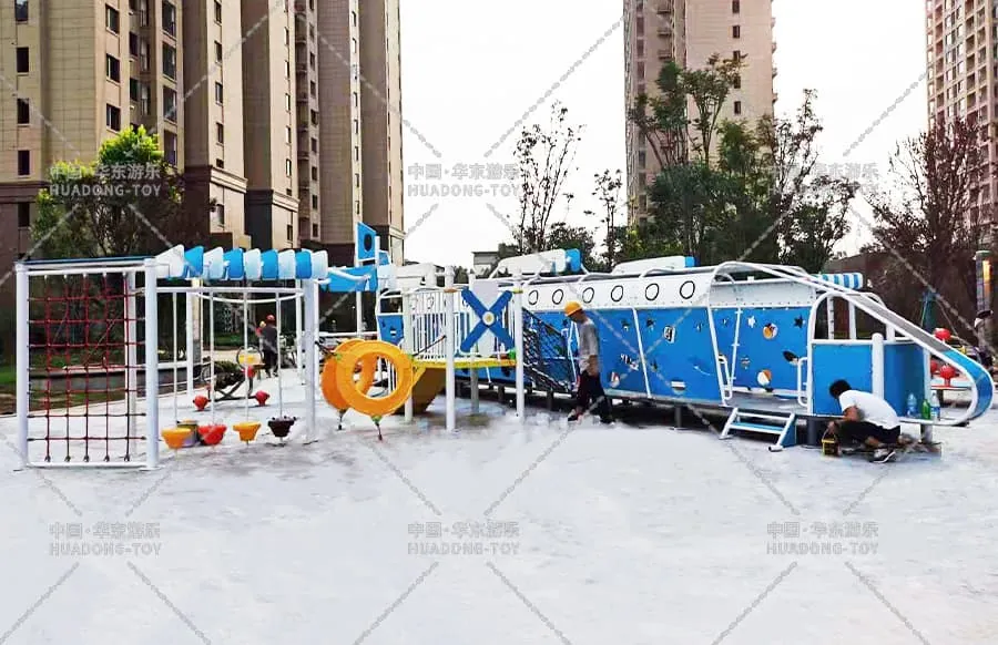 The amusement equipment selected for the Longteng Beihai Tengfei Garden in Xuchang Henan is independently designed by HUADONG Amusement featuring non-powered amusement equipment. The entire site is designed with a space shuttle theme and new additions.