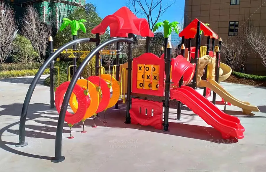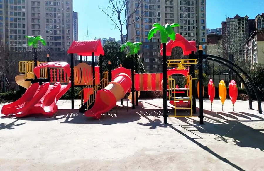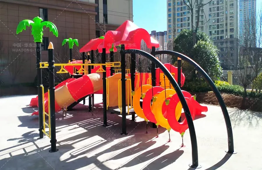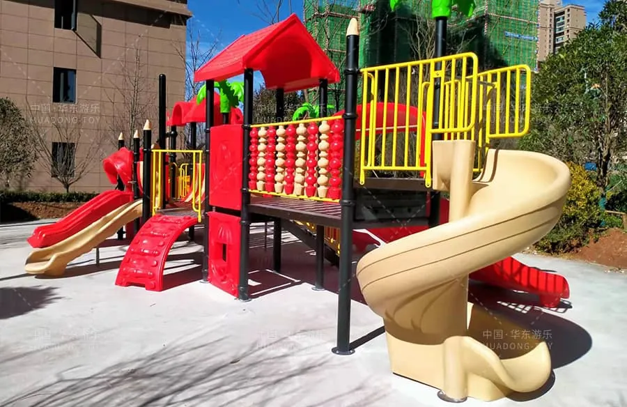 This is the Nature Series slide independently developed and produced by Huadong Amusement. It combines multiple functions like climbing crawling through tunnels multi-person slides stairs and spiral slides. Its vibrant colors and high quality.