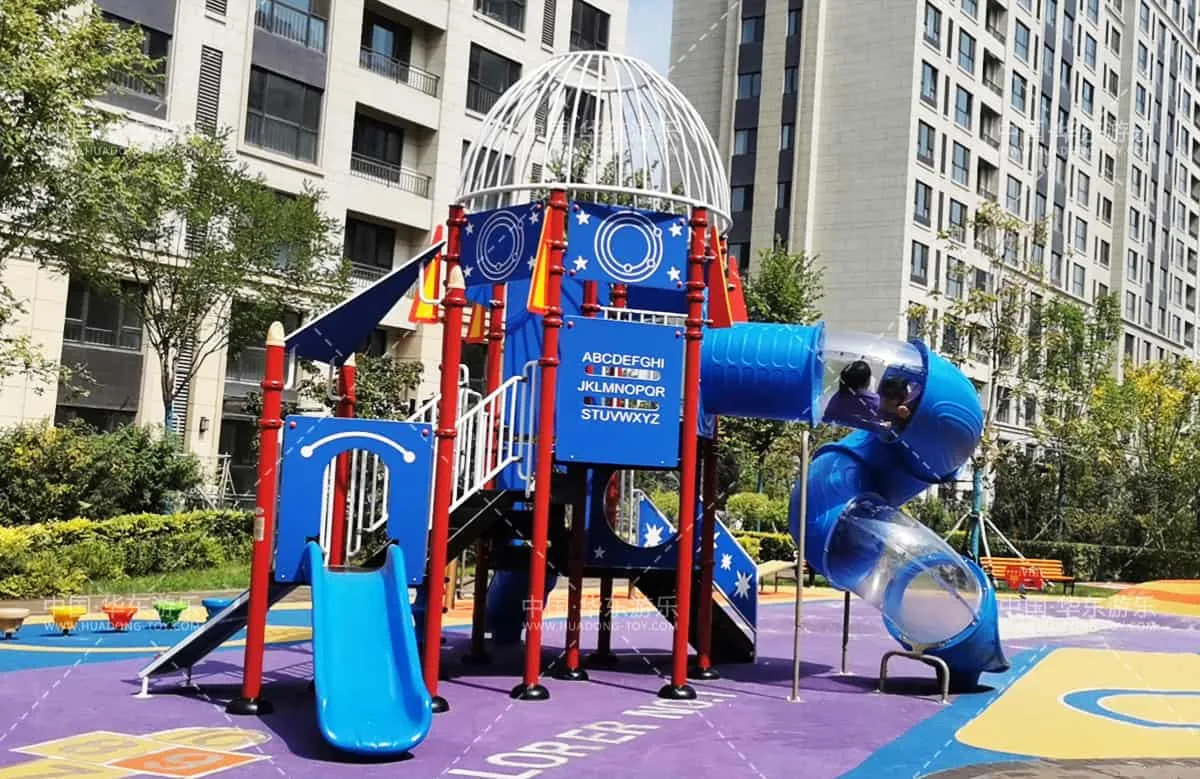 This customized space shuttle-themed amusement equipment includes children's favorite rocking music, balance blocks, and adult fitness equipment, offering a leisure spot for community residents.