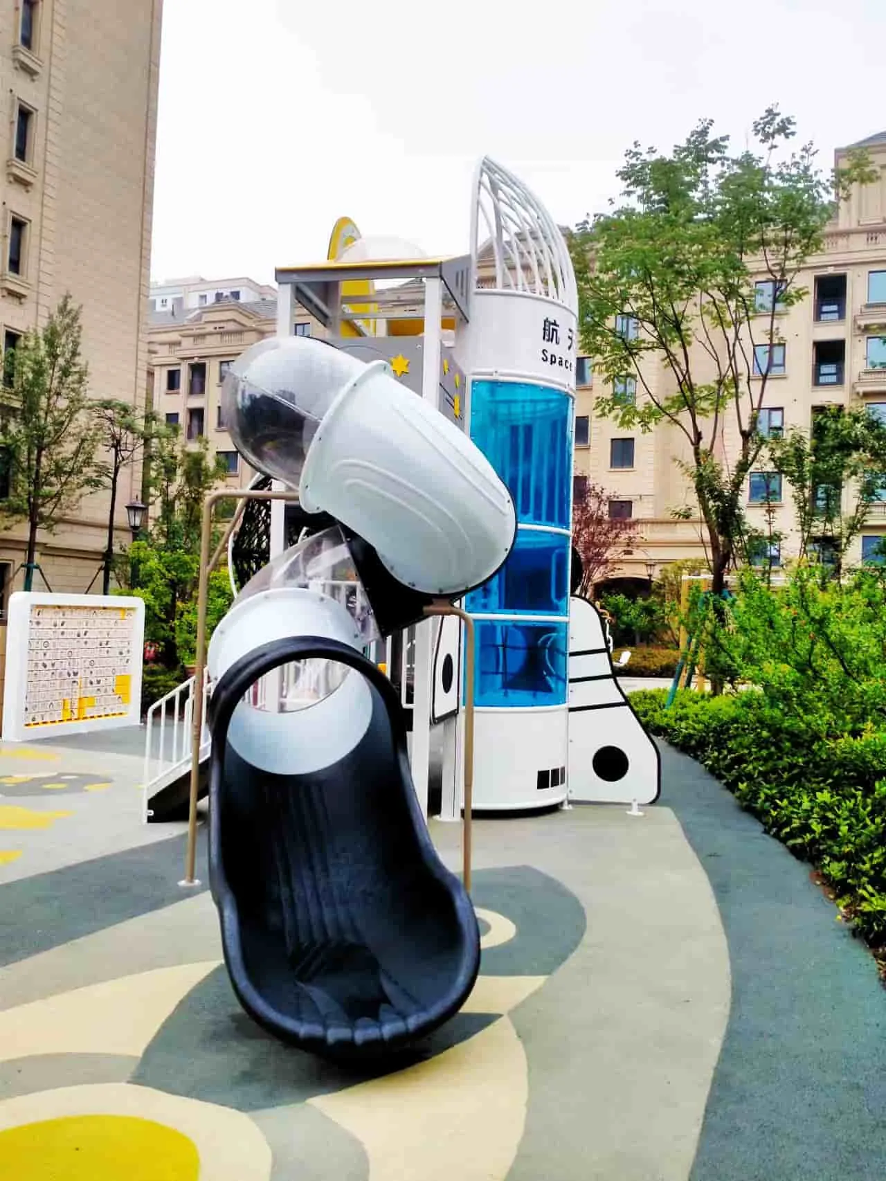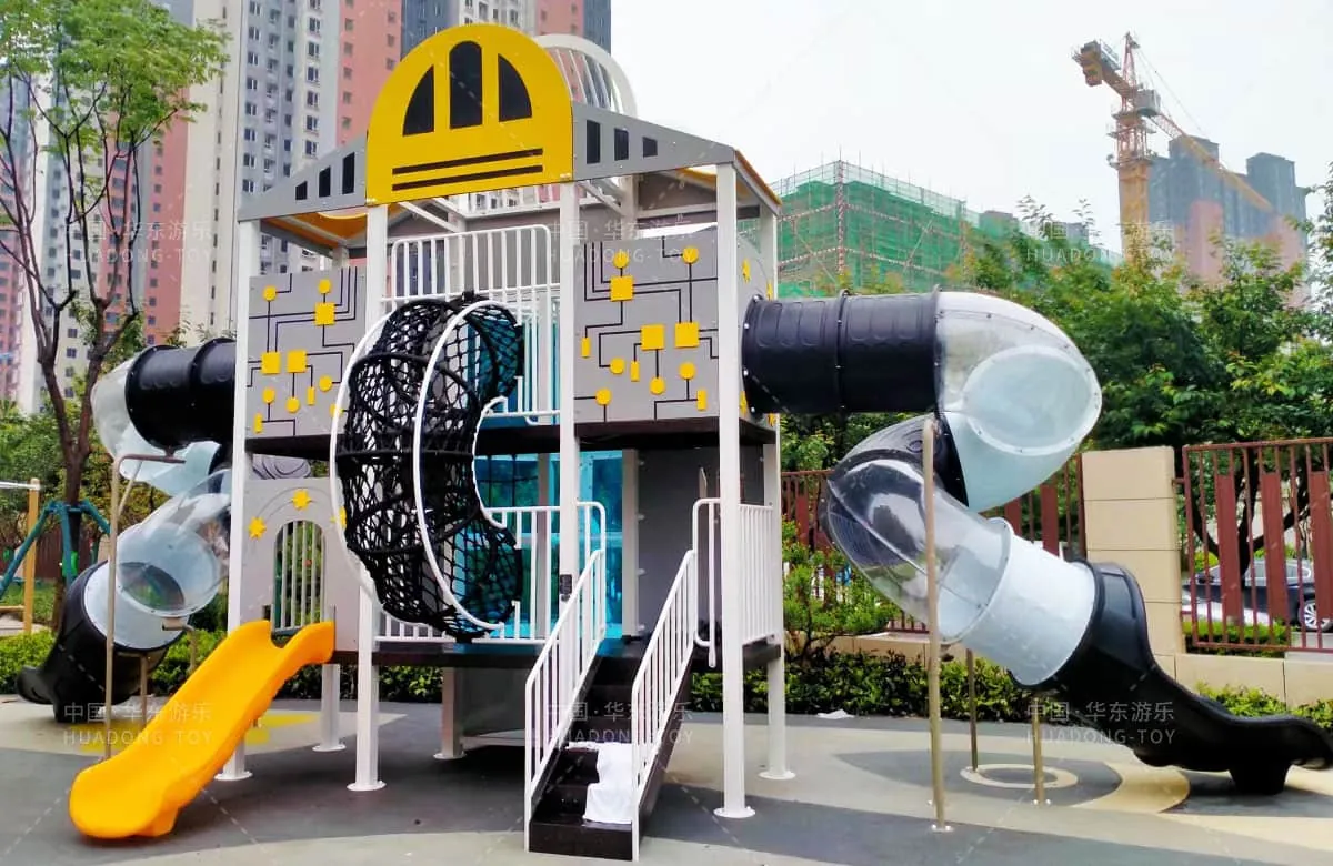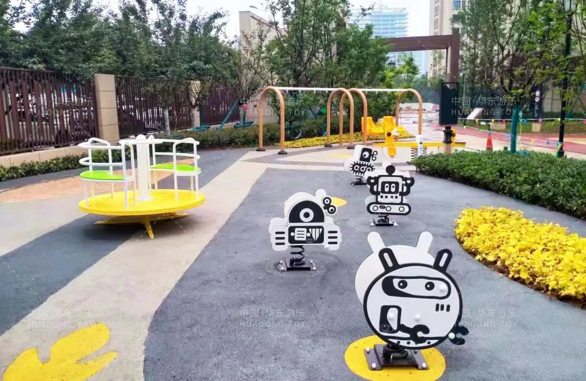 This space-themed amusement park features child-friendly music, swings, seesaws, swivel chairs, and large shuttle attractions, sparking children's curiosity for exploration.