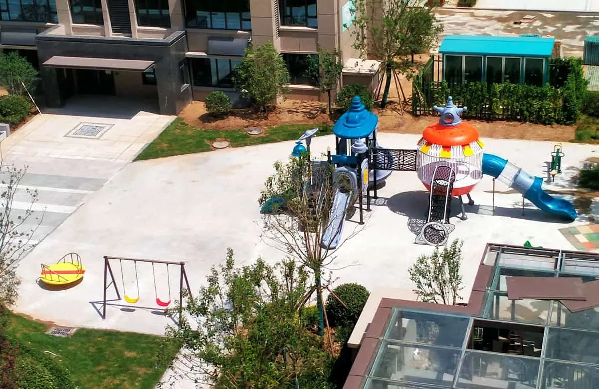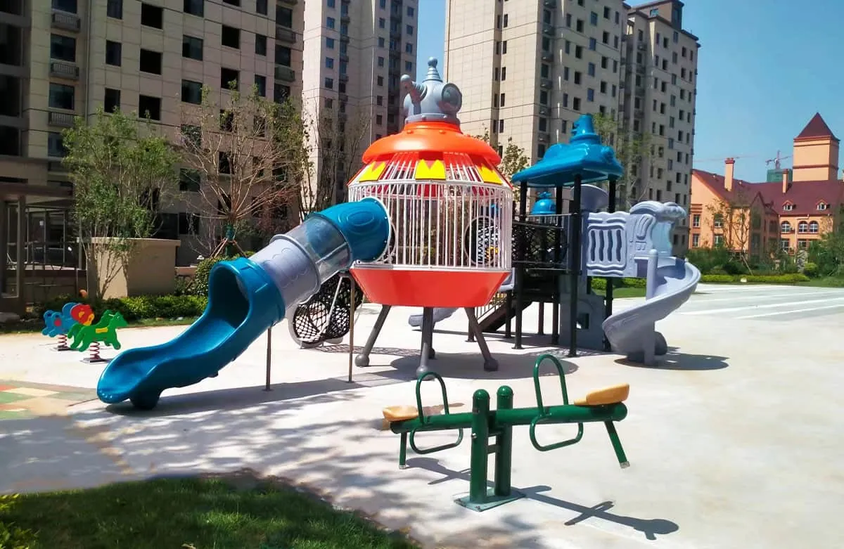 This amusement park features Saiya series combination slides, various fitness equipment, swivel chairs, children's seesaws, swing sets, and more.