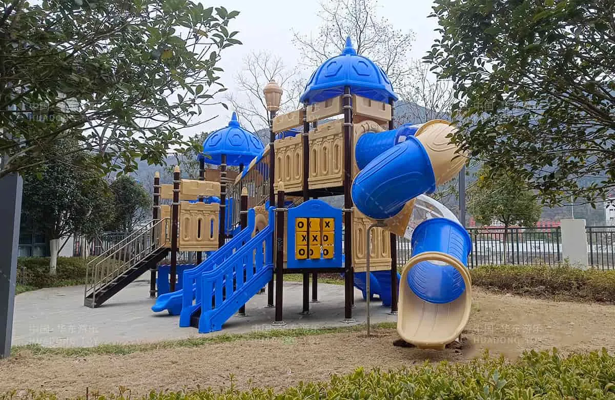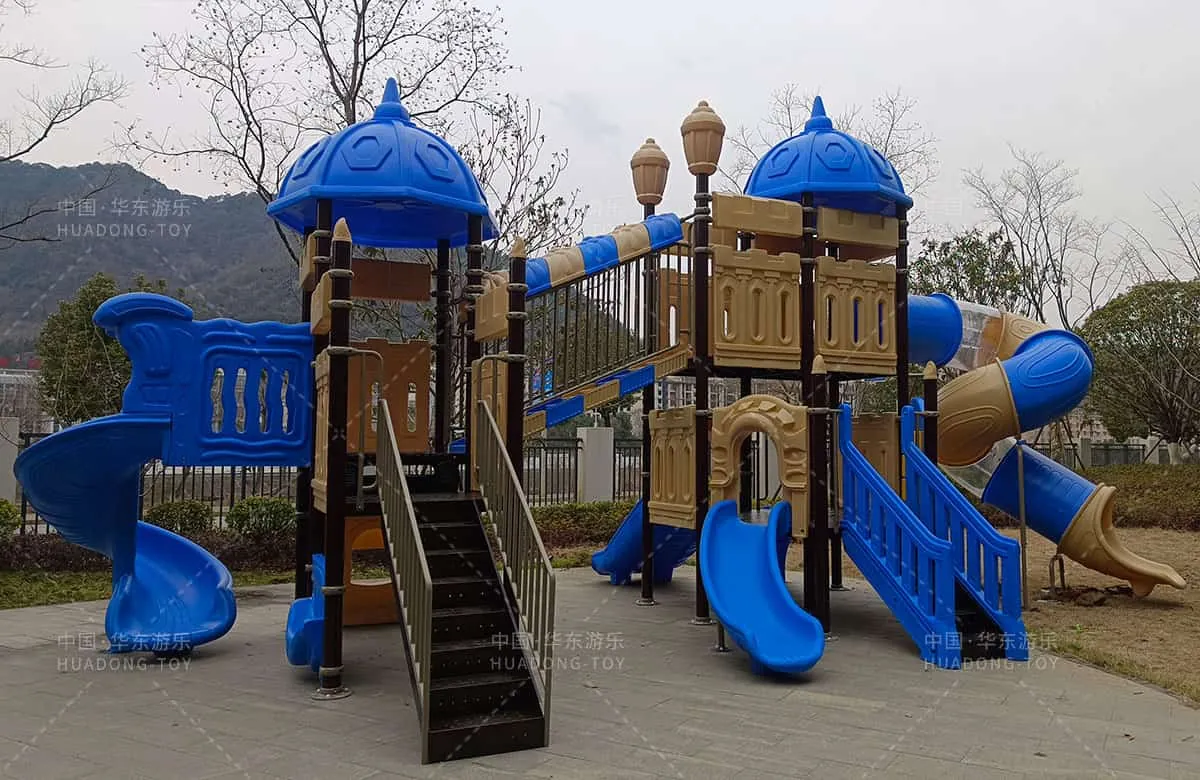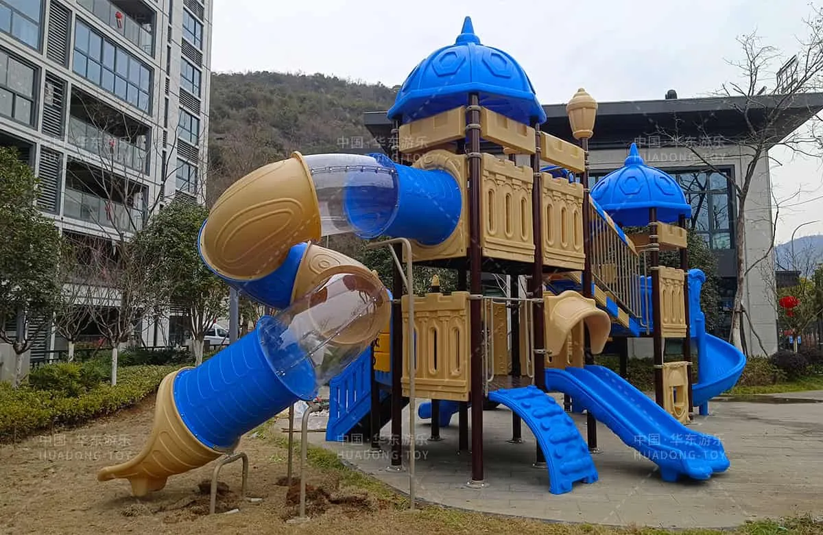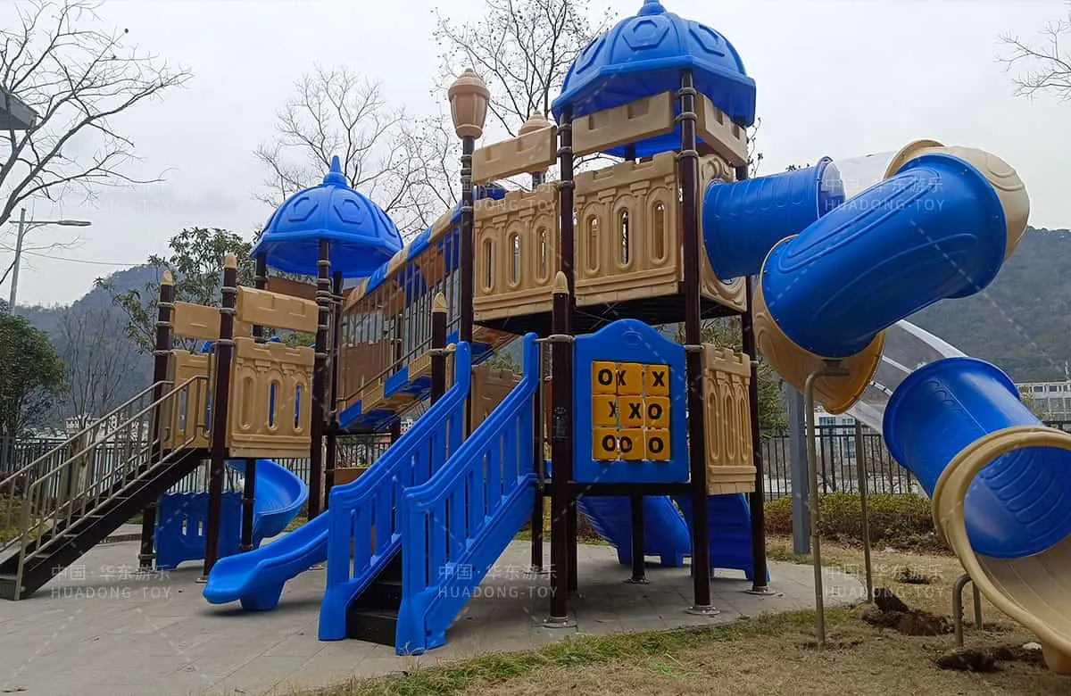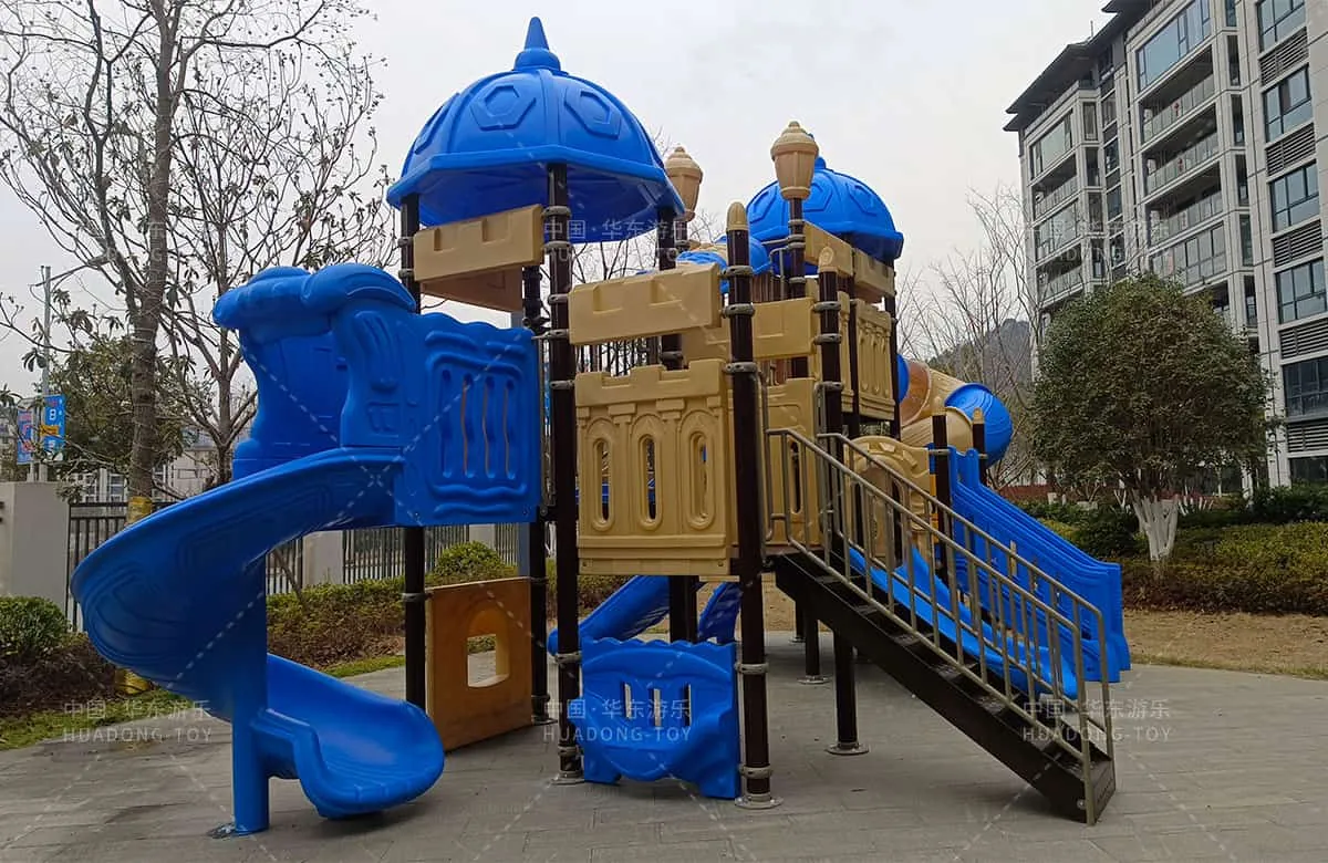 Huadong Play's independently designed villa series combination slide features vibrant colors, exceptional durability, and versatile functions, making it a favorite among children and customers.