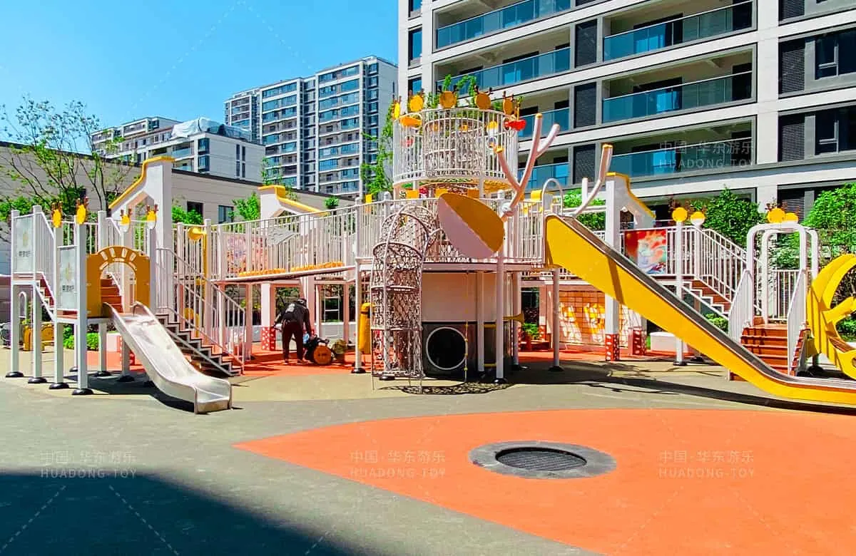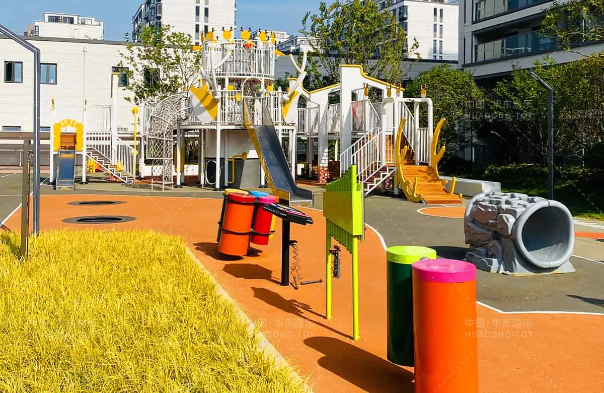 This deer park-themed design is independently developed by Huadong Play. It features cheerful children's rocking music for rhythmic swaying engaging percussion instruments to foster rhythm sense stimulating climbing nets for courage and fitness training.