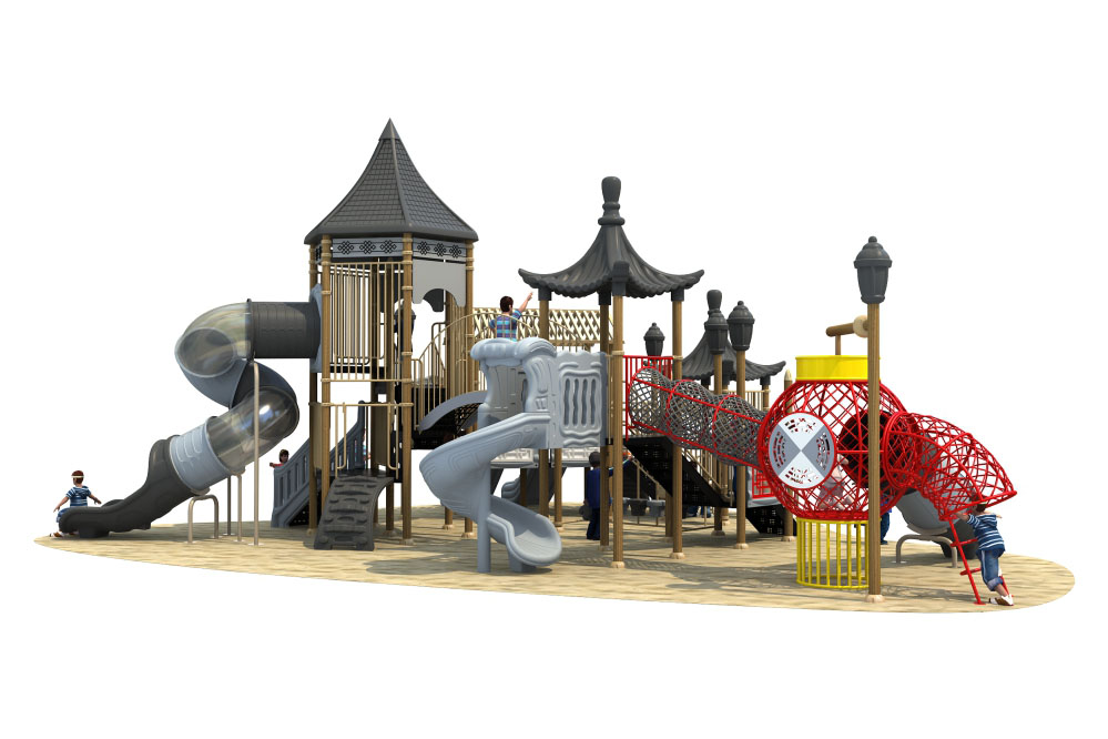 | Material | 1. Plastic parts: LLDPE, Roto-moulded 2. Metal parts: Galvanized steel pipe, color powder coated. 3. Platform/Stepped-ladder: Steel sheet, color powder coated or PVC coated (About coated). Advantage of PVC coated: 1) PVC coated is soft and thus prevents kids from bruising. 2) In extreme weather, PVC coating prevent the deck and stepped-ladder getting too hot or cold. |